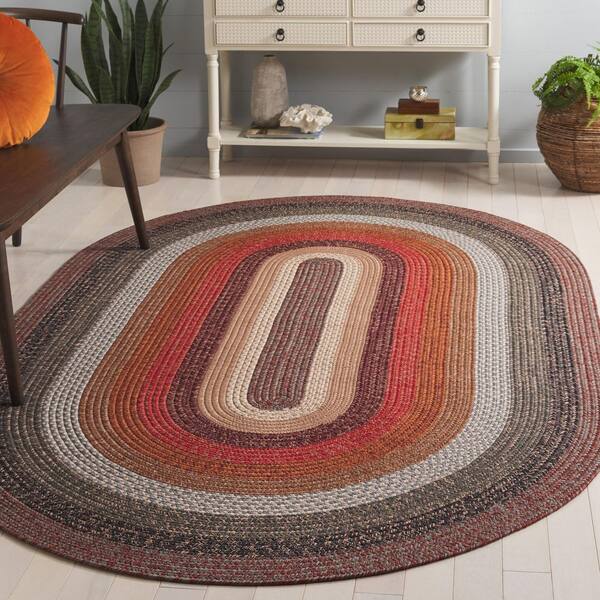 Braided Brown/Rust 8 ft. x 10 ft. Machine Washable Multicolor Striped Oval Area Rug