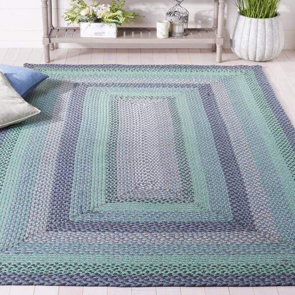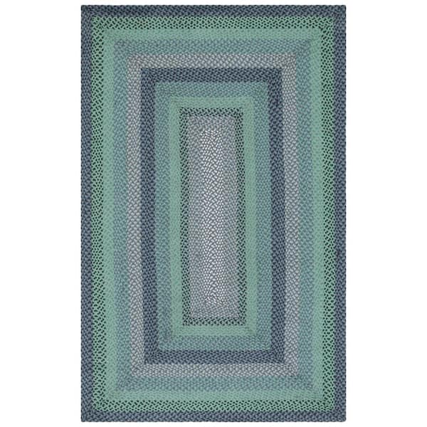 Braided Gray Green Doormat 3 ft. x 5 ft. Striped Border Area Rug