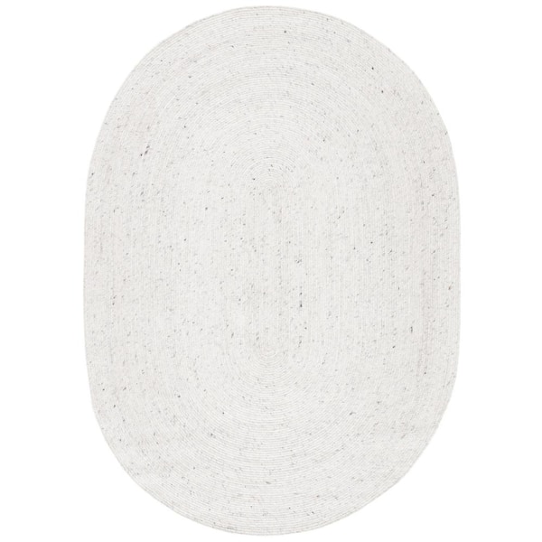 Braided Light Beige 8 ft. x 10 ft. Oval Speckled Solid Color Area Rug