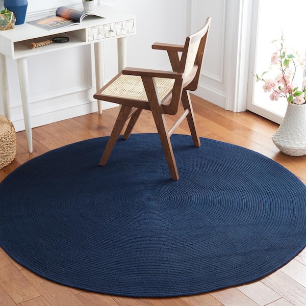 Braided Navy 7 ft. x 7 ft. Abstract Round Area Rug