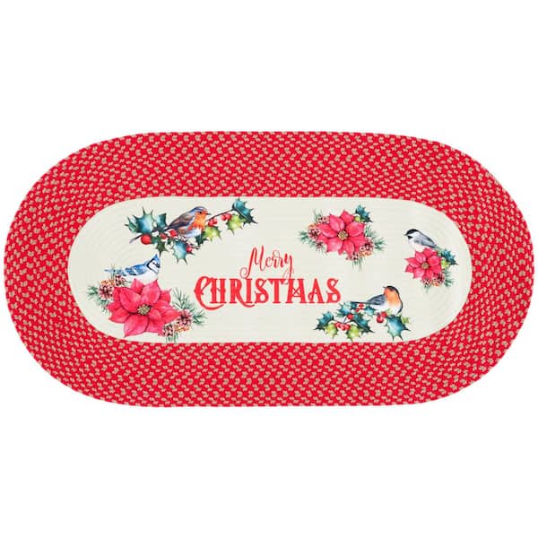 Braided Posters Ivory/Red 2 ft. x 4 ft. Machine Washable Merry Christmas Floral Oval Area Rug