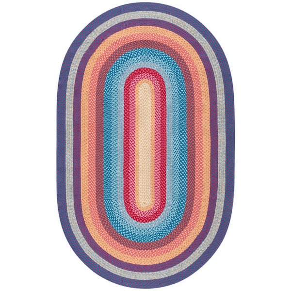 Braided Red/Orange 5 ft. x 8 ft. Machine Washable Border Interlaced Oval Area Rug