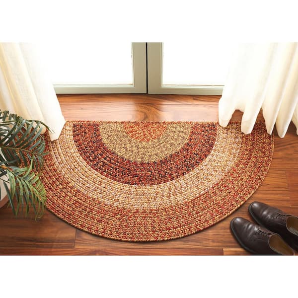 Braided Rust/Red 2 ft. x 4 ft. Machine Washable Solid Striped Border Specialty Area Rug