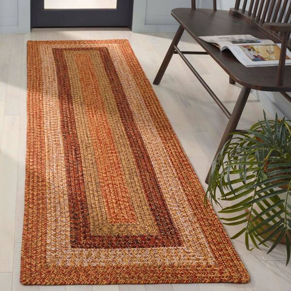 Braided Rust/Red 2 ft. x 8 ft. Machine Washable Solid Striped Border Runner Rug
