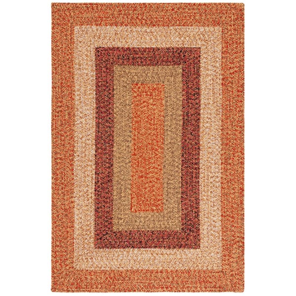 Braided Rust/Red 3 ft. x 5 ft. Machine Washable Solid Striped Border Area Rug