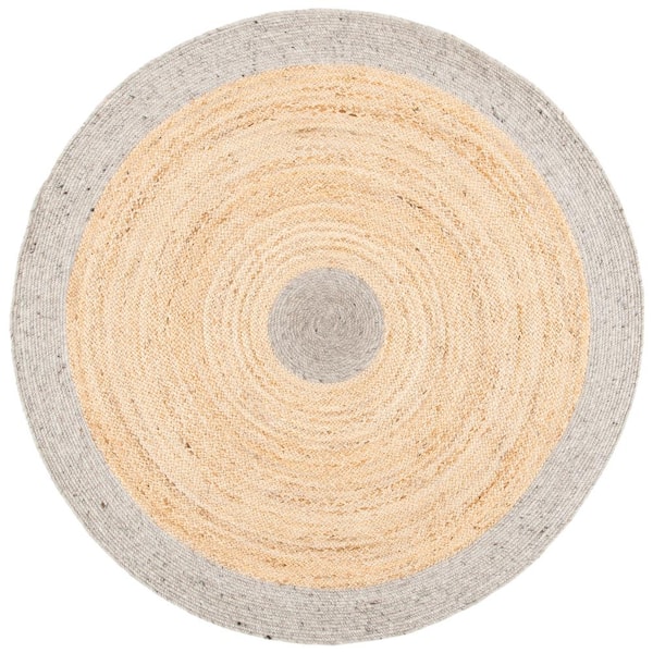 Braided Silver Natural 6 ft. x 6 ft. Solid Border Round Area Rug