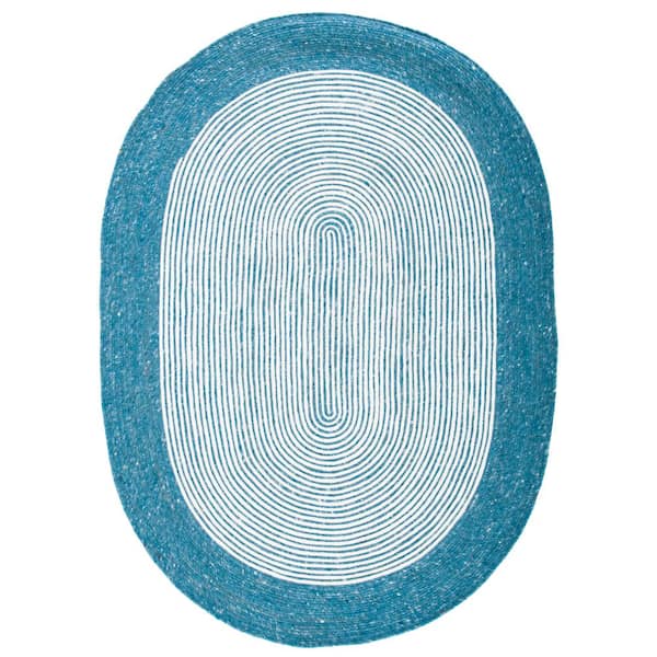 Braided Teal Ivory 4 ft. x 6 ft. Border Striped Oval Area Rug