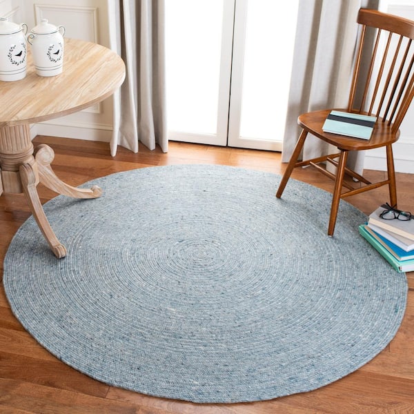 Braided Turquoise 8 ft. x 10 ft. Oval Speckled Solid Color Area Rug