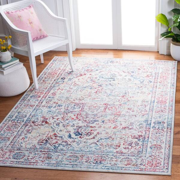 Brentwood 3 ft. x 3 ft. Ivory/Blue Distressed Border Medallion Square Area Rug
