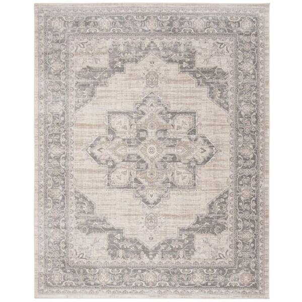 Brentwood Cream/Gray 12 ft. x 18 ft. Floral Medallion Border Area Rug