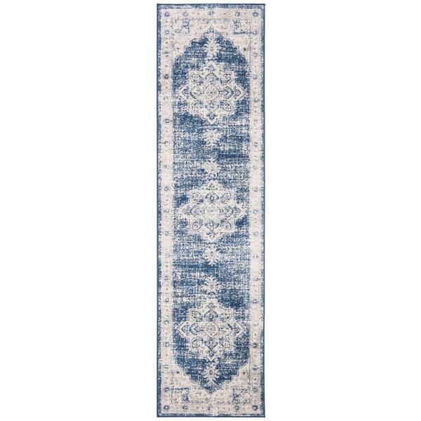 Brentwood Ivory/Navy 2 ft. x 16 ft. Floral Medallion Border Runner Rug