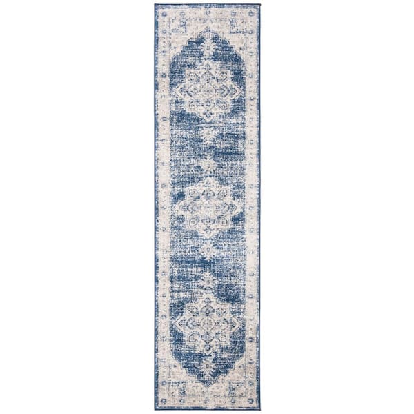 Brentwood Ivory/Navy 2 ft. x 8 ft. Floral Medallion Border Runner Rug