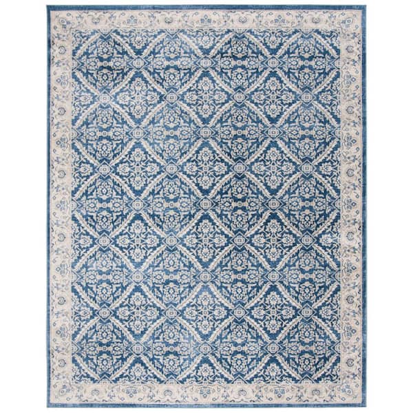Brentwood Navy/Cream 12 ft. x 18 ft. Antique Floral Border Area Rug