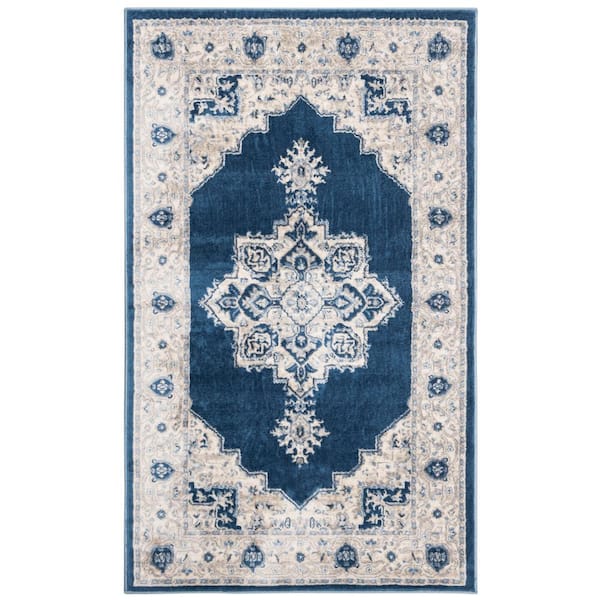 Brentwood Navy/Cream 4 ft. x 6 ft. Floral Medallion Border Area Rug