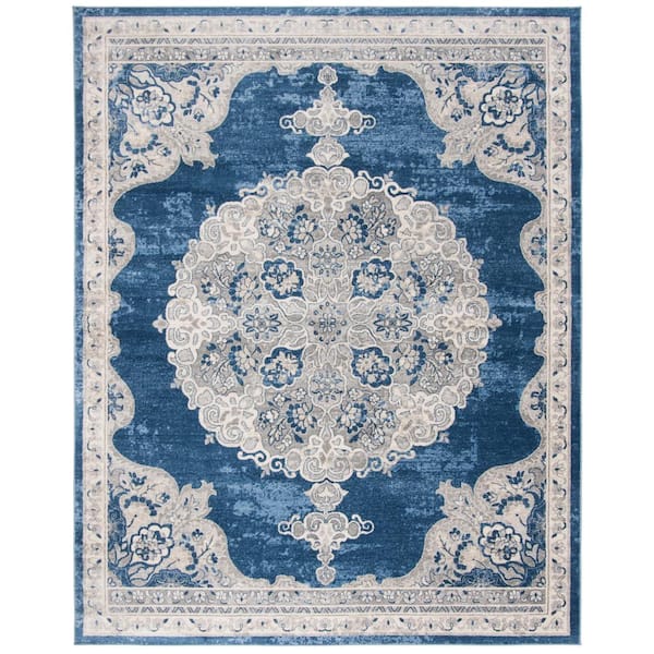 Brentwood Navy/Light Gray 8 ft. x 10 ft. Distressed Medallion Floral Area Rug