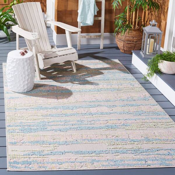 Cabana Aqua/Pink 5 ft. x 8 ft. Abstract Striped Indoor/Outdoor Area Rug