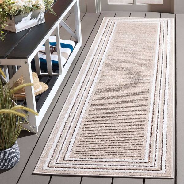 Cabana Beige/Ivory 2 ft. x 8 ft. High-Low Striped Border Indoor/Outdoor Runner Rug
