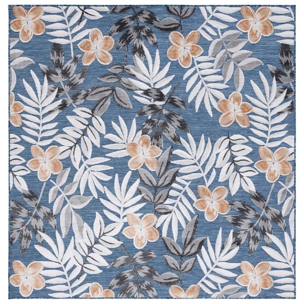 Cabana Blue/Gray 6 ft. x 6 ft. Botanical Floral Indoor/Outdoor Square Area Rug