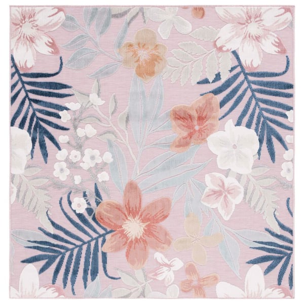 Cabana Pink/Gray 6 ft. x 6 ft. High-Low Floral Leaf Indoor/Outdoor Square Area Rug