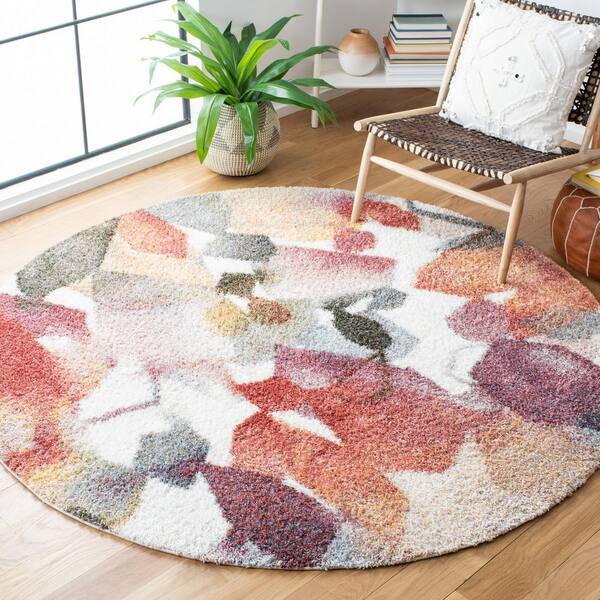 Calista 7 ft. x 7 ft. Rust/Gold Abstract Multicolor Round Area Rug