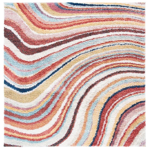 Calista 7 ft. x 7 ft. Rust/Gray Abstract Parallel Square Area Rug