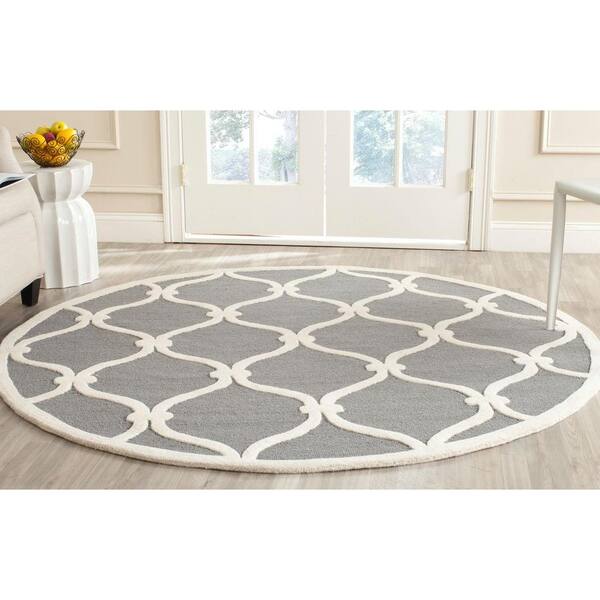 Cambridge Dark Gray/Ivory 6 ft. x 6 ft. Round Knotted Geometric Border Area Rug