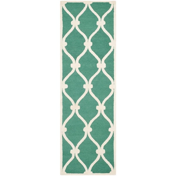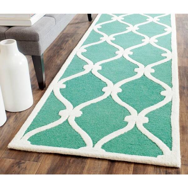 Cambridge Teal/Ivory 3 ft. x 8 ft. Border Knotted Geometric Runner Rug