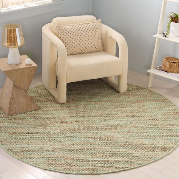 Cape Cod 6 ft. x 6 ft. Green/Natural Abstract Distressed Round Area Rug