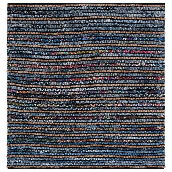 Cape Cod 6 ft. x 6 ft. Natural/Blue Gradient Striped Multicolor Square Area Rug