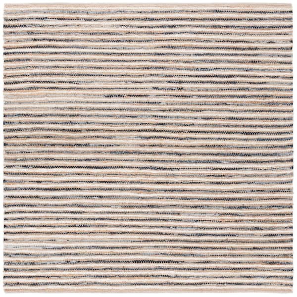 Cape Cod 6 ft. x 6 ft. Natural/Navy Striped Abstract Square Area Rug