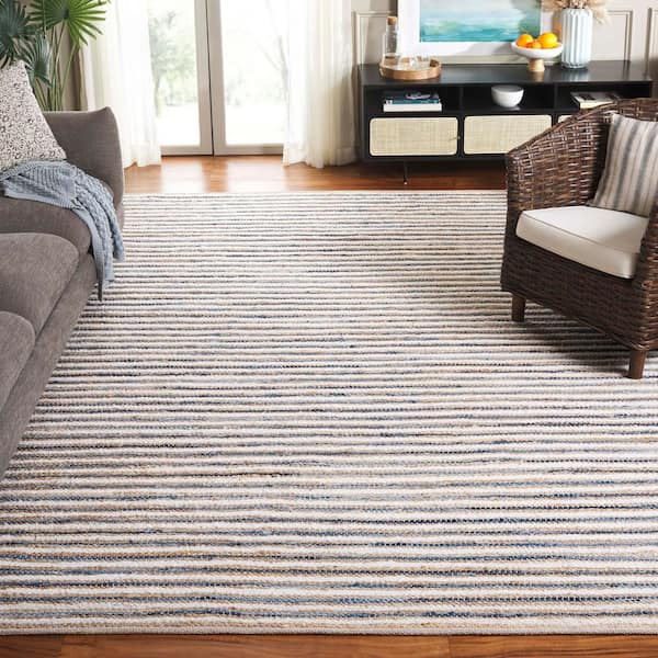 Cape Cod 8 ft. x 10 ft. Natural/Blue Striped Abstract Area Rug