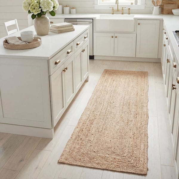Cape Cod Natural 2 ft. x 8 ft. Solid Border Runner Rug