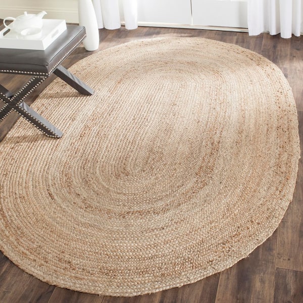 Cape Cod Natural 7 ft. x 9 ft. Solid Color Border Oval Area Rug