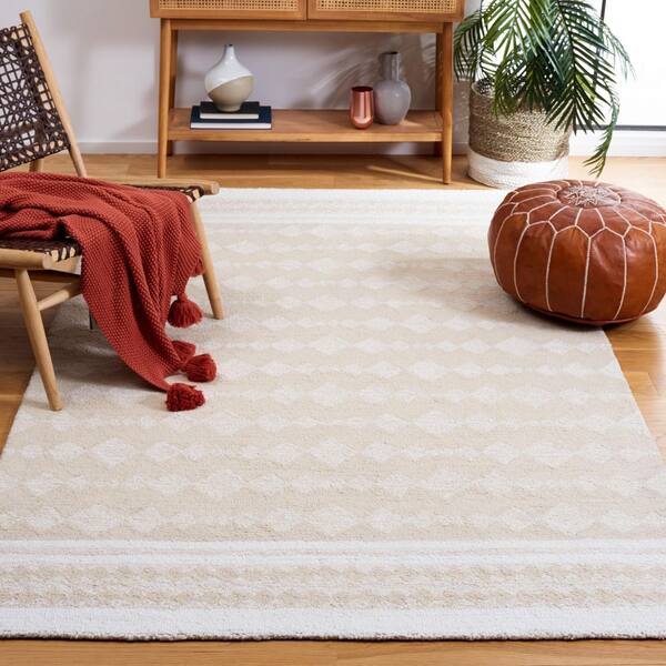 Capri 6 ft. x 6 ft. Ivory/Beige Border Diamond Square Area Rug