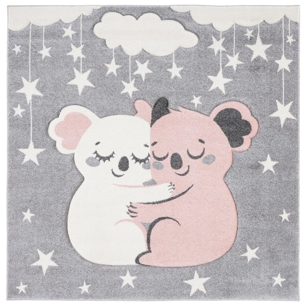 Carousel Kids Gray/Ivory 5 ft. x 5 ft. Stars Square Area Rug