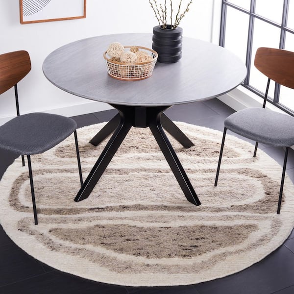 Casablanca 6 ft. x 6 ft. Ivory/Brown Abstract Rectangle Round Area Rug
