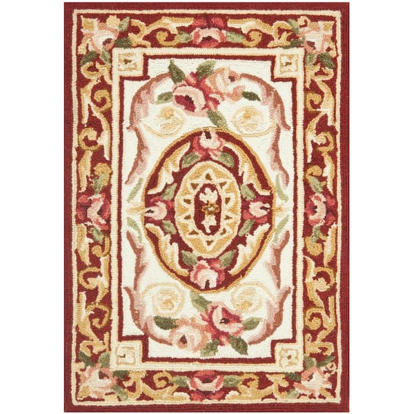 Chelsea Ivory/Burgundy Doormat 2 ft. x 3 ft. Floral Medallion Border Area Rug