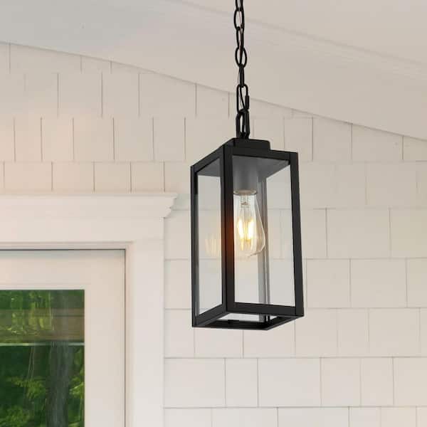 Clemens 40-Watt 1-Light Black Pendant-Light with Glass Shade