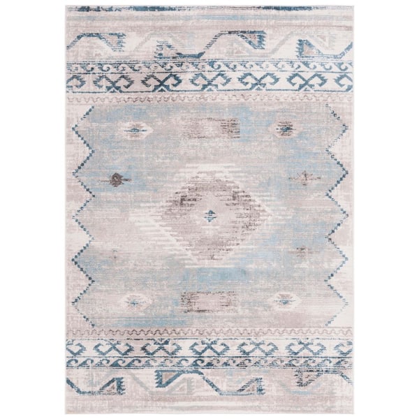 Cornelia 4 ft. x 6 ft. Blue/Ivory Aztec Distressed Area Rug
