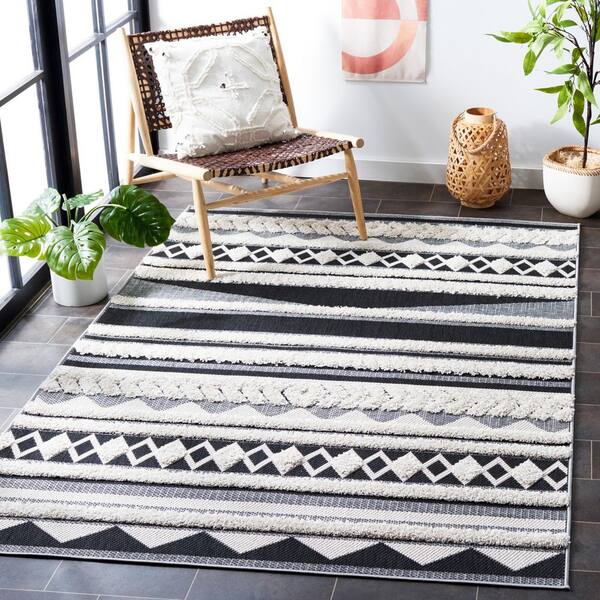 Cottage Ivory/Black 8 ft. x 10 ft. High-Low Striped Indoor/Outdoor Area Rug
