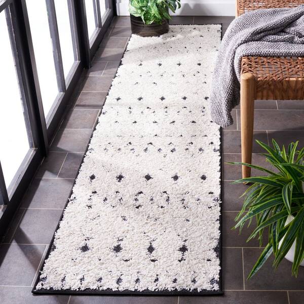 Cottage Ivory/Dark Gray 2 ft. x 8 ft. Diamond High-Low Indoor/Outdoor Runner Rug