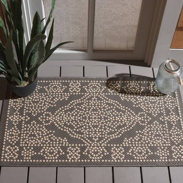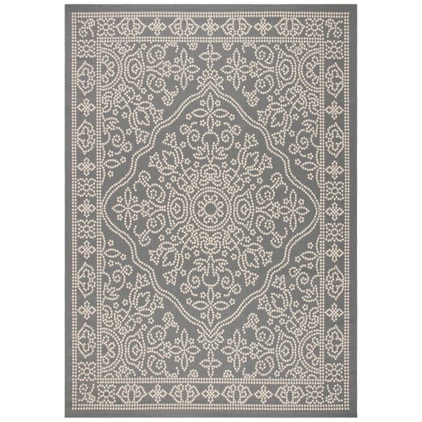 Courtyard Anthracite/Beige 8 ft. x 11 ft. Traditional Ornate Floral Indoor/Outdoor Area Rug