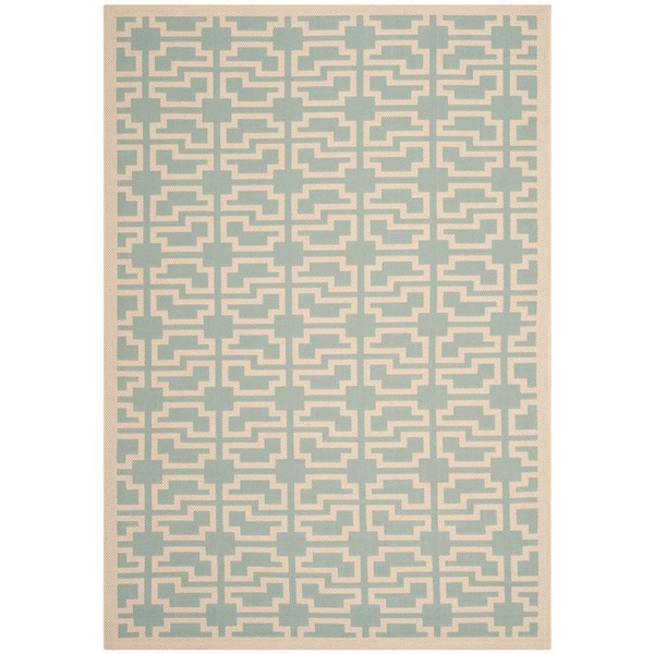 Courtyard Aqua/Beige 3 ft. x 5 ft. Geometric Indoor/Outdoor Area Rug