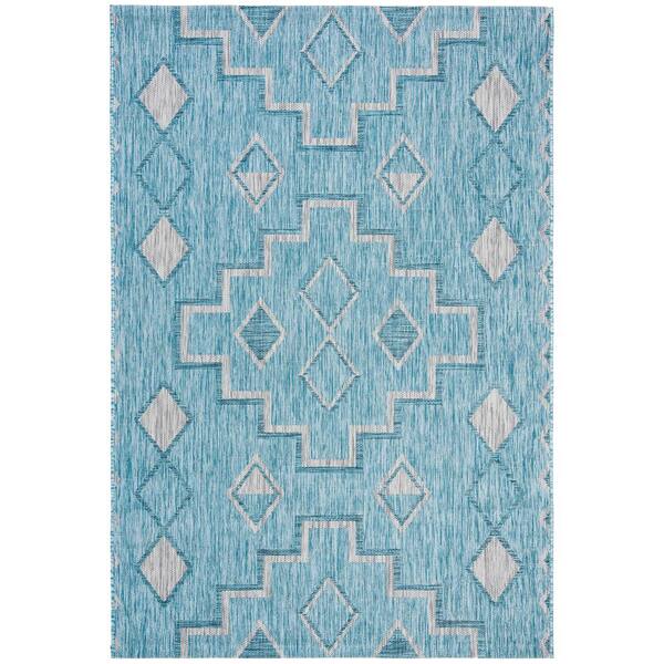Courtyard Aqua/Gray 5 ft. x 8 ft. Indoor/Outdoor Area Rug