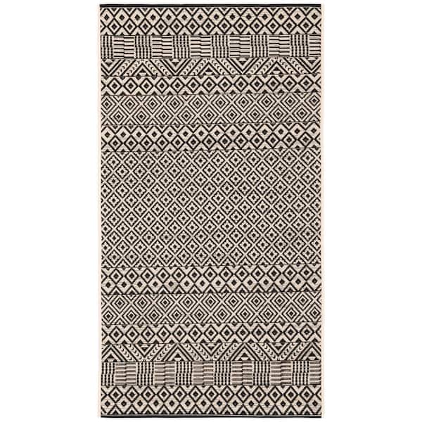 Courtyard Beige/Black Doormat 3 ft. x 5 ft. Tribal Striped Diamonds Indoor/Outdoor Patio Area Rug