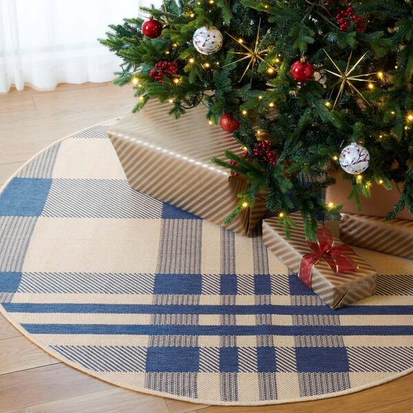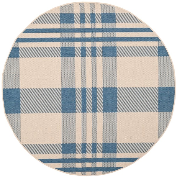 Courtyard Beige/Blue 4 ft. x 4 ft. Plaid Indoor/Outdoor Round Area Rug