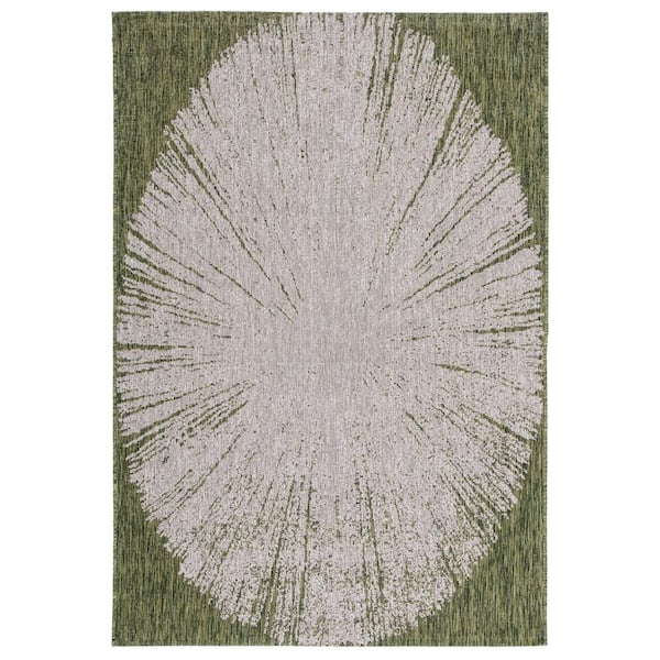 Courtyard Beige/Dark Green 4 ft. x 6 ft. Floral Abstract Indoor/Outdoor Area Rug