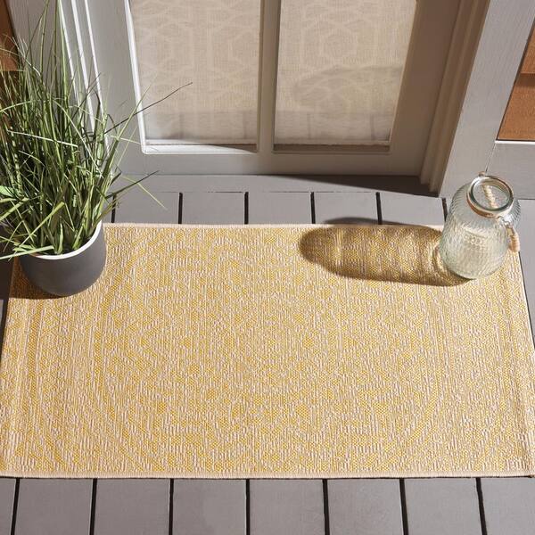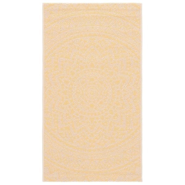 Courtyard Beige/Gold 3 ft. x 5 ft. Medallion Indoor/Outdoor Area Rug