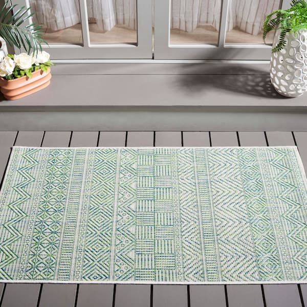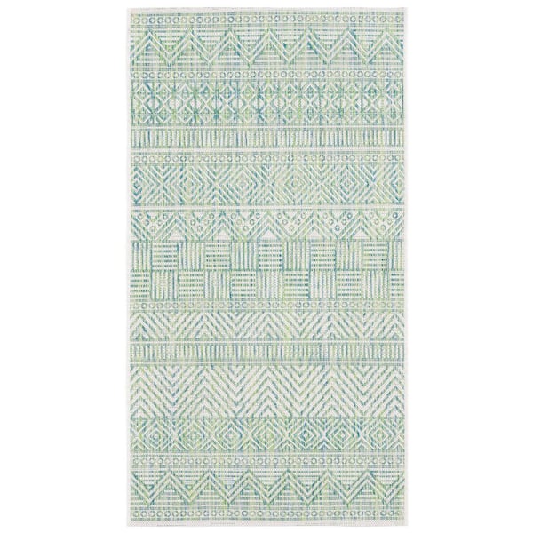 Courtyard Beige/Green 3 ft. x 5 ft. Striped Tribal Chevron Indoor/Outdoor Area Rug