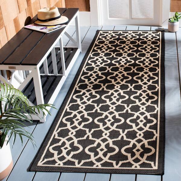 Courtyard Black/Beige 3 ft. x 8 ft. Border Indoor/Outdoor Patio Runner Rug